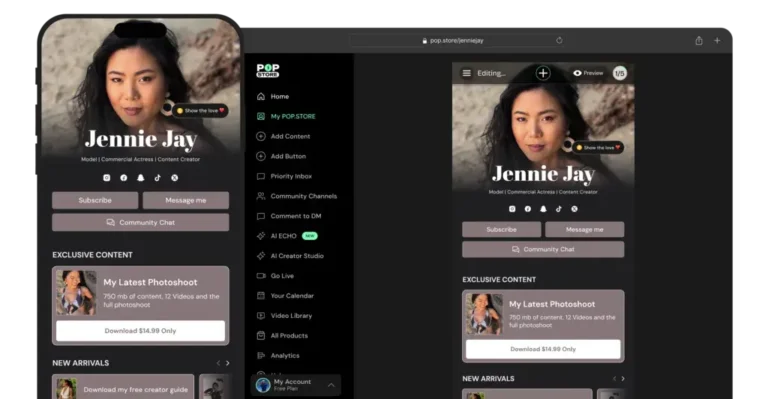 POP.STORE is the Agentic AI Operating System for Creators. Designed for the AI era, it gives creators the infrastructure to grow an audience, sell products, launch subscriptions, go live, collect tips, and build community all-in-one place, with ECHO-ME powering the intelligence behind it all.